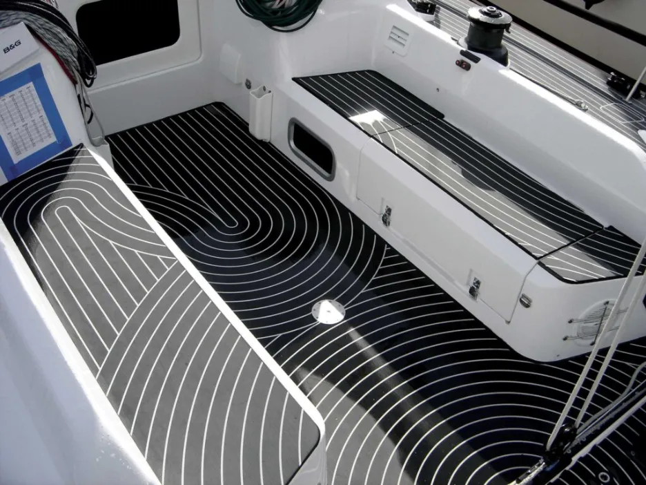 Seadeck’s expanded foam decking has a sportier look, but it’s waterproof and has great grip. Photo courtesy of Ryan Cove