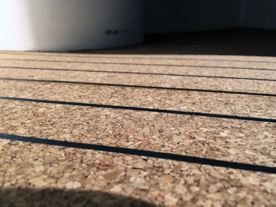 This concept is hardly new; cork has been used commercially for flooring in public spaces, like court buildings, colleges, and libraries, for well over 100 years. The cork itself is also sustainable and proper harvesting doesn’t damage the cork oak trees. Harvesting involves removing the outer layer of bark and letting the tree regenerate its protective layer over a period of at least nine years. Cork boat decking often uses high-quality ground scraps from wine cork manufacturing, making it a recycled material on top of that. The cork granules are combined with a synthetic binder and molded under pressure and heat to form the final product.
