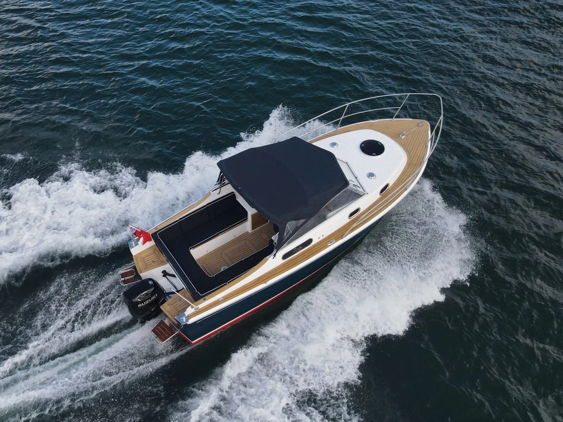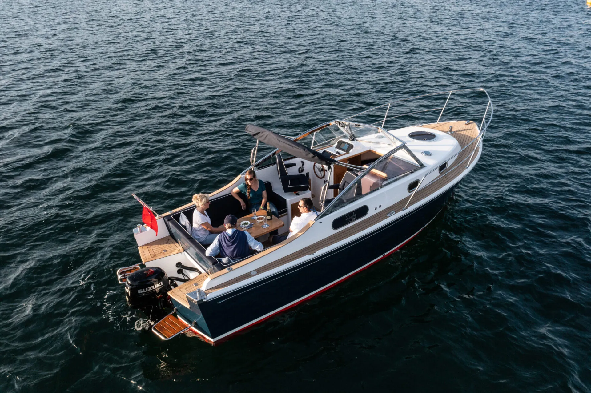 Discover the Duchy 25, the stylish and versatile little sister of the renowned Duchy range. Compact, lightweight, and open to the air, the Duchy 25 features a spacious open cockpit and your choice of efficient outboard power — including a quiet electric engine option. With a displacement of just 2.5 tonnes, this trailerable motor yacht makes it easy to explore your favorite cruising destinations by road or sea.
