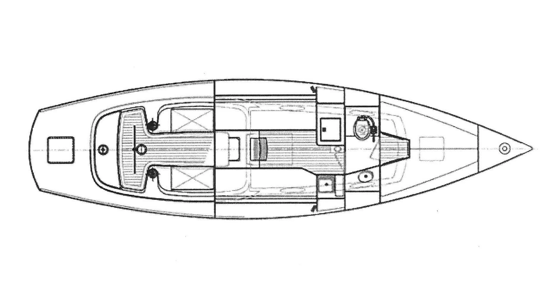 - All halyards, sheets, reefing lines and traveler control lines are lead below deck to helm winches for easy operation
