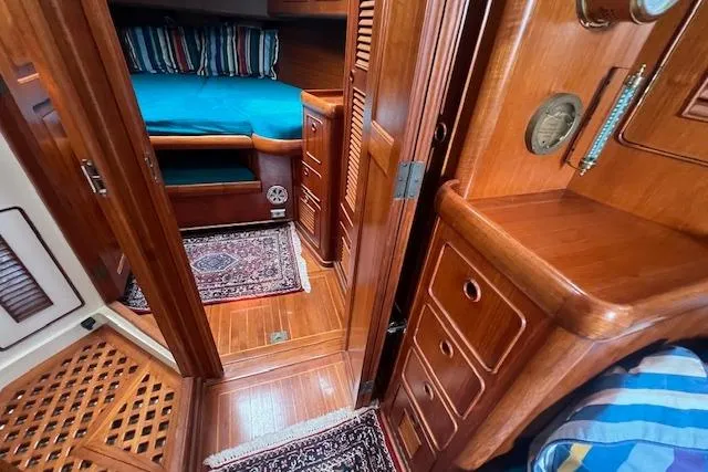 SEPTEMBER MORN, a highly sought-after yacht model, was meticulously designed by renowned naval architect Ted Hood and built by the respected Little Harbor yard in 1986. This beautiful vessel is an exceptional choice for entertaining and extended cruising, offering the perfect blend of luxury and performance on the water. Her elegant teak interior is designed with comfort in mind, featuring versatile slide-out settees on both the port and starboard sides, providing ample seating and space. The yacht can comfortably accommodate up to six guests in two well-appointed staterooms, ensuring a relaxing and enjoyable stay on board. For ease of cruising and superior comfort, SEPTEMBER MORN is outfitted with a range of high-end features, including a Hood electric stowaway in-mast furling system, which can be conveniently operated from the helm. The yacht also boasts a Navtec hydraulic vang, equipped with cockpit controls and electric self-tailing Barient winches that simplify sail handling. The Harken MKIV 2 roller furling headsail adds further convenience, allowing for smooth and efficient sail adjustments during a wide range of conditions. The yacht’s craftsmanship is immediately apparent as soon as you step aboard, reflecting the exceptional build quality for which Little Harbor is known. SEPTEMBER MORN has been carefully maintained and upgraded by an experienced yachtsman, ensuring that she remains in top condition. One of the standout features of this vessel is her brand-new diesel engine, installed in 2023, offering dependable and efficient performance for all your cruising adventures. With numerous thoughtful upgrades and professional care throughout, SEPTEMBER MORN stands ready for her next owner to enjoy a lifetime of exploration and luxury on the water. Key Features • Large comfortable T-shaped aft cockpit • Lead keel ballast • Centerboard • Maxwell-Nilsson electric anchor windless • Nanni 50hp diesel engine low hours (new 2023) Not all boats listed online are listed with Wellington Yacht Partners, but we can work on your behalf. For more information on this vessel or to schedule a showing, please contact Wellington Yacht Partners by calling our office at (401) 683-6070.