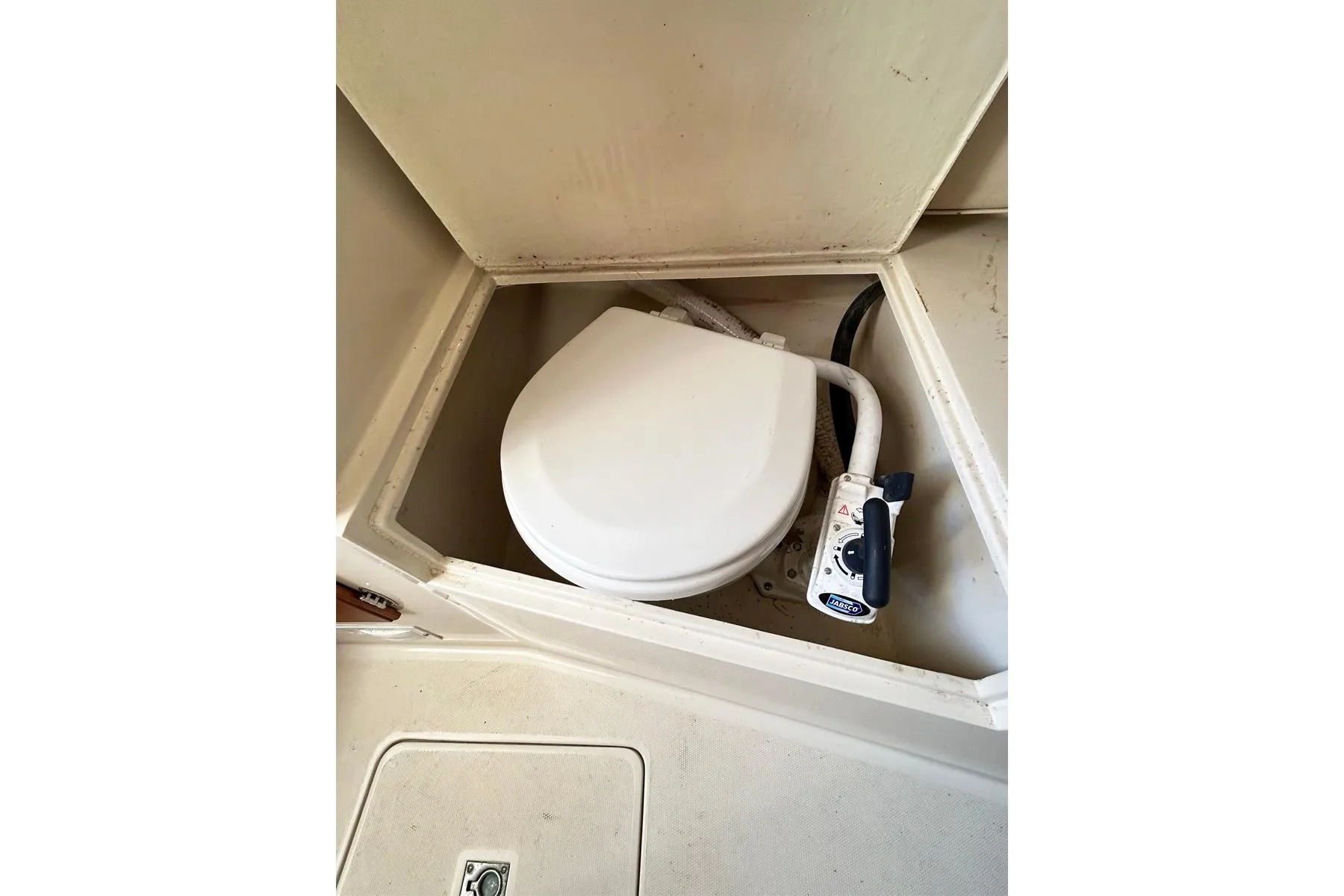 - Jabsco manual head under port berth (new 2024) with holding tank & Y-valve