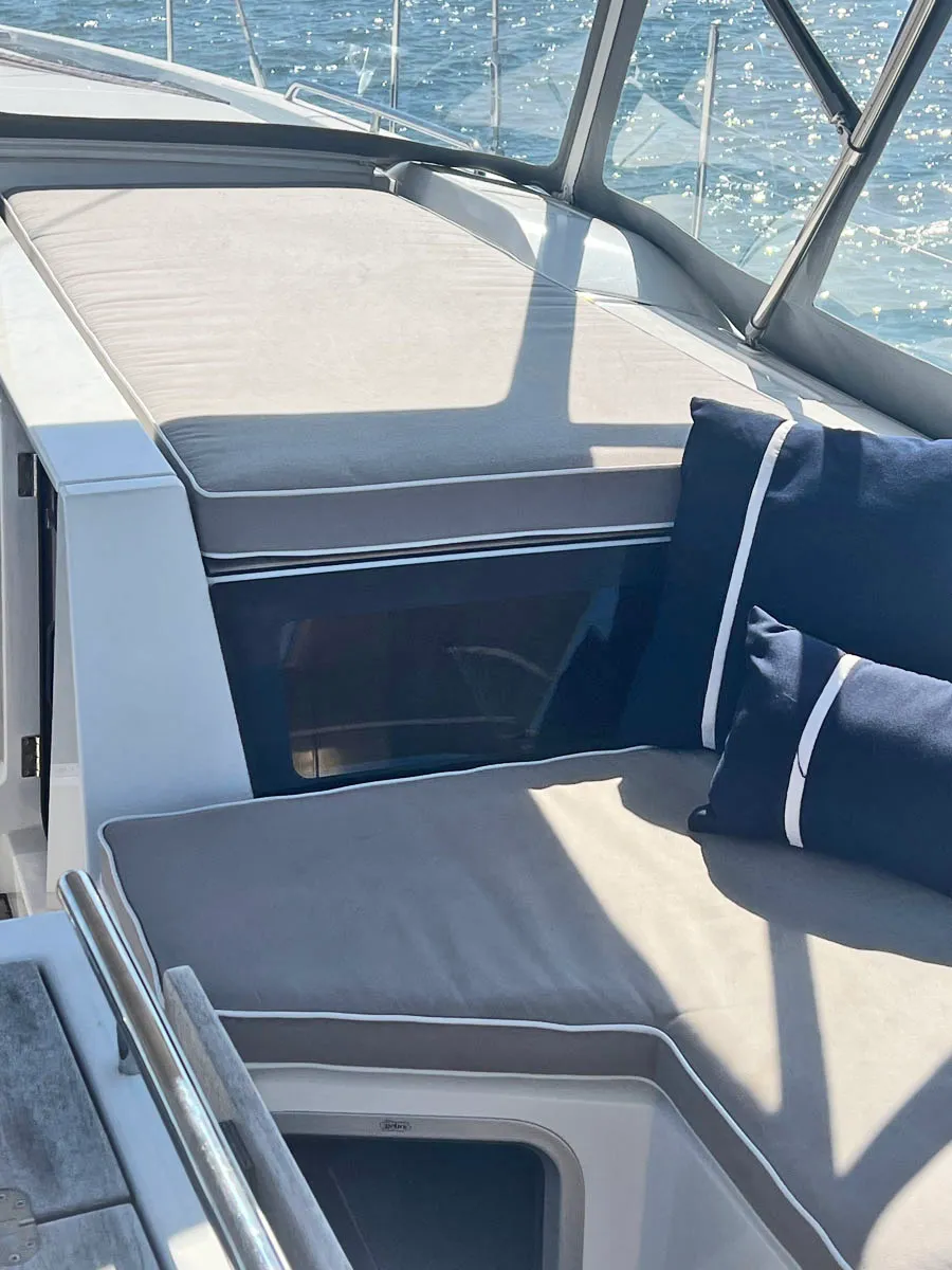 VITAE MAGNA has the three cabin/two head layout with Alpi Mahogany joinery and Ultraleather Parchment (off white) cushions below with the “comfort trim package” offered by Beneteau. On deck cockpit cushions are in light grey Sunbrella with white piping to accompany the light grey dodger/bimini/canvas covers and darker grey boot stripe for a coordinated and sharp look. The boat has seen light summer usage and is in fantastic shape. Always professionally cared for since new- she is presented in sail-away condition complete with tender and outboard and is competitively priced and ready for the coming summer!