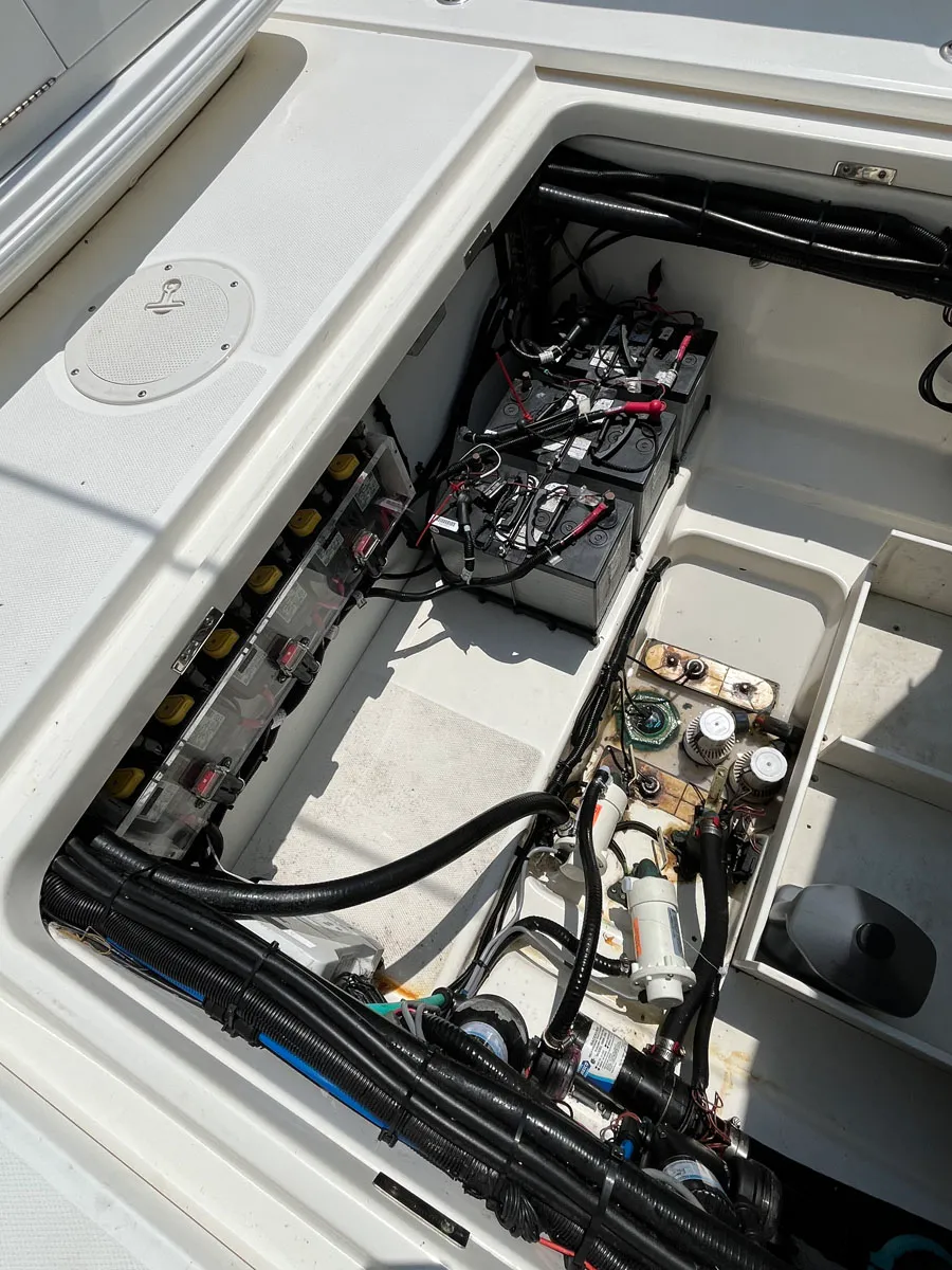 - Automatic bilge pumps – 1100 GPH interior, 2000 GPH bilge, 2000 GPH with high water steady state alarm
