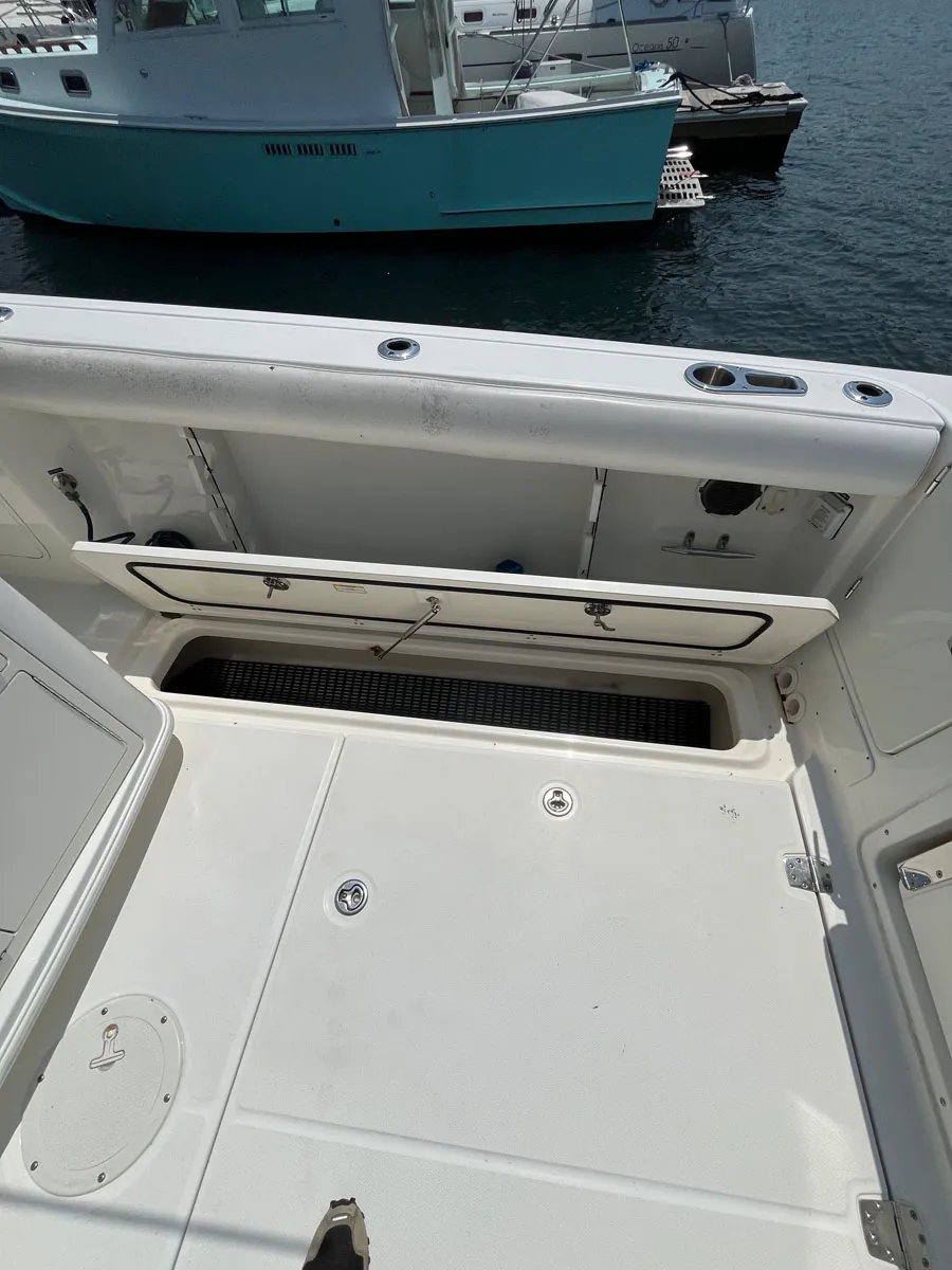 - Insulated in-floor fishboxes with pump-out – aft (2), forward (1)