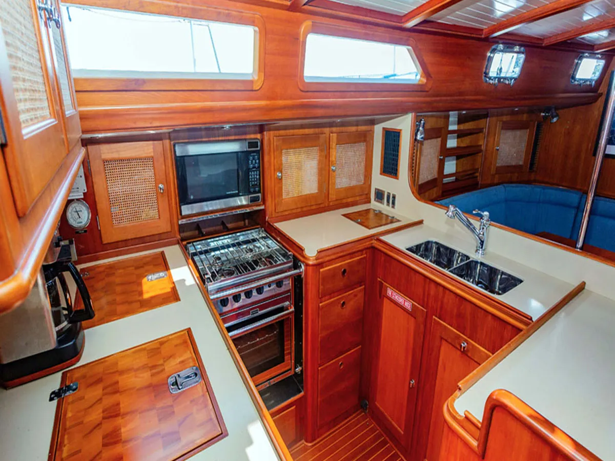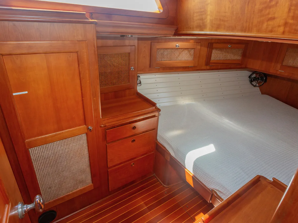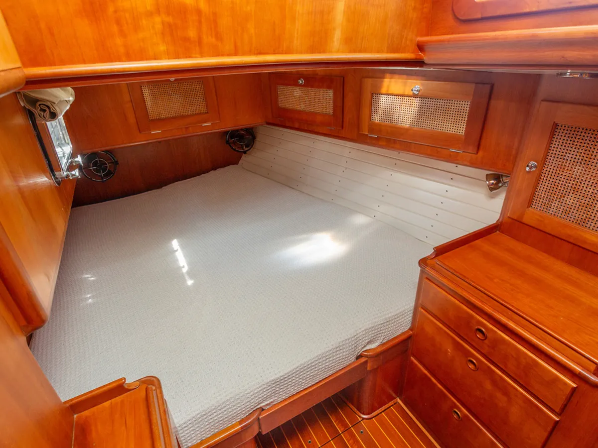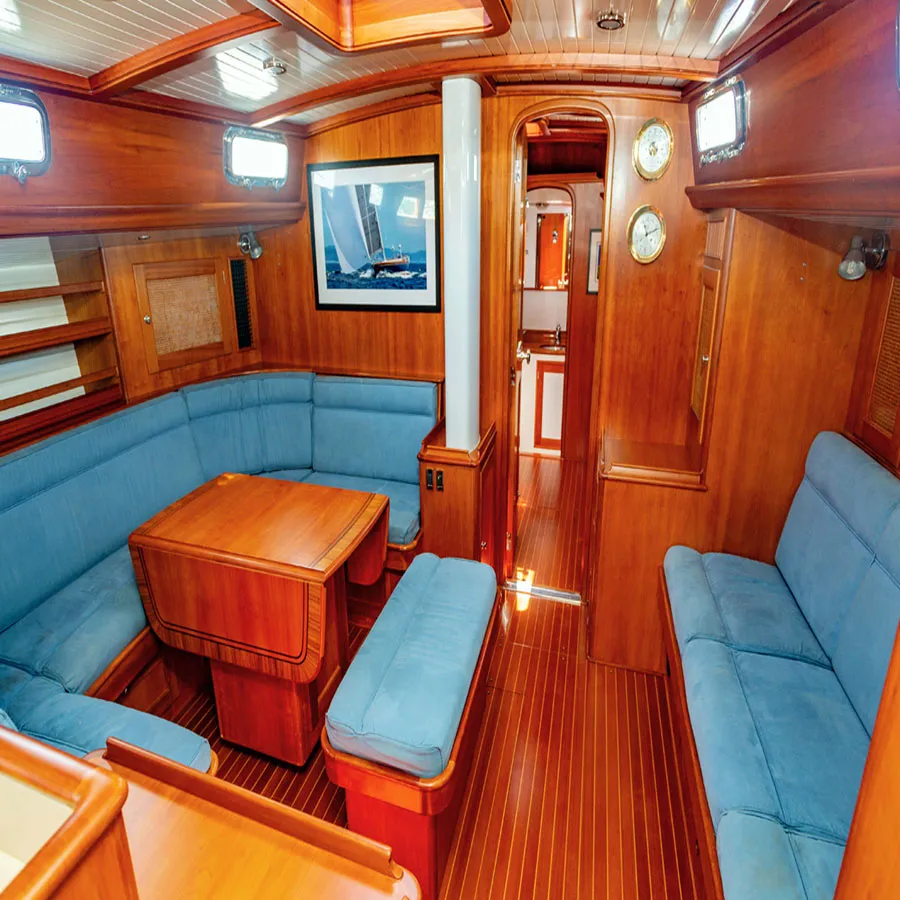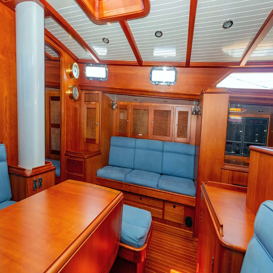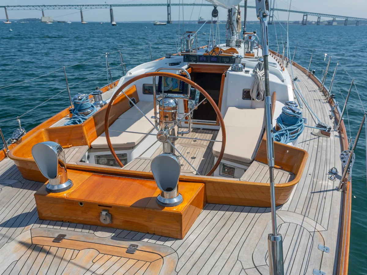 INTRODUCTION VERISSIMO is a custom-built Alden 63 designed by the offices of John G. Alden Naval Architects of Boston and built by a joint venture with Eric Goetz Custom Boats of Bristol, Rhode Island, producing the composite hull, deck and structure. Goetz built a light, strong hull and deck (seamless vacuum bagged biaxial E glass in epoxy resin over Baltec Contourkore). The interior structural bulkheads are constructed with Nomex panels for weight savings. The boat was then shipped to Derecktor Shipyards of Mamaroneck, New York who, with their decades of experience, fitted her out with systems, machinery and joinery. She was launched in 1998. VERISSIMO has the appearance of a traditional yacht with her beautiful lines and fine exterior detailing, yet she also has very good sailing characteristics thanks to her powerful sail plan, moderate draft keel, slippery hull form and deep spade rudder. Her race record has proven that with several top finishes in offshore races under ORR, local PHRF races and classic yacht “Spirit of Tradition” events under the CYOA rule (a complete race history is available upon request). She is truly a joy to sail – surprisingly fast in light winds and stable, sea-kindly in higher wind ranges and rough conditions. Sail trim changes are easily made thanks to modern wireless and helm control systems only seen on much larger yachts – see pictures herein and brief video that demonstrate this very nice feature. VERISSIMO is also a very comfortable cruising yacht with a beautifully appointed interior, three spacious cabins and an extensive list of equipment to support extended time aboard. A truly rare yacht offered at a fraction of the $6.5 million replacement cost. OWNER REMARKS (new 2/12/2025) “I purchased VERISSIMO when I turned 65 in 2012 being curious as to where she would take me for my next decade. Looking back, I’ve made many great memories both cruising and to my surprise, racing, with a class victory in the 2016 Newport to Bermuda Race. Also multiple victories in Maine’s Camden Classic with a 2023 overall win! This series is run by Classic Yacht Owner Association (CYOA https://www.classicyachts.org/ ). Also two overall wins and class wins in Jamestown’s Around The Island race. And a class win in the 2017 Marblehead to Halifax Race. Summers cruising southern New England to Maine and winters in the Caribbean have provided fun and adventure with friends, family and grandkids. During my ownership, VERISSIMO has been properly maintained and upgraded. The 2021 addition of pushbutton or remote-control adjustments of the vang, traveler, outhaul, backstay and mainsheet (in and out) have improved ease of sail trim resulting in better boat speed. (Please see attached video). Also, VERISSIMO, has had the same captain since 2015 and can be easily sailed by two people. I think a great outcome for VERISSIMO could be a small group of people forming a partnership to own VERISSIMO. A bit complex, but cost sharing among like-minded partners can make something happen that might not otherwise be doable. The CYOA has 14 plus races to choose from every year from Maine to Connecticut and one in Antigua too! Personally, I’ve only entered the Camden Classic, then cruised Maine to relax! VERISSIMO (Italian for “True”) is a beautiful, strong and fast yacht, built and maintained to a high standard. Now it’s someone else’s turn to see where she takes you while making some great memories!” ACCOMMODATIONS The interior of VERISSIMO is beautifully crafted with fine cherry joinerwork including solid trim, custom detailing and teak and holly floorboards all with a satin finish. The entire overhead throughout the yacht was rebuilt in 2016 with laminated cherry deck beams and white tongue and groove panels. And in 2018, both heads were updated to include new gloss varnished teak countertops, sinks and faucets. Starting aft - there are twin guest staterooms to port and starboard of the main companionway, each with twin berths that can convert to a double. There is generous storage space including a large hanging locker and numerous drawers and lockers. Each cabin has a portlight, (2) opening portholes, deck prism and a deck hatch for great light and ventilation. The aft cabins share a common head and shower stall, located to starboard. Forward of the head to starboard is the comprehensively equipped navigation station. This area features a large chart table, curved seat with backrest, main switch panels and a complete array of navigation and communication instruments. Forward to port is the large wraparound galley, designed to be functional and safe while at sea. There is an abundance of counterspace (all replaced 2013), with tremendous storage space all around. The inboard galley area on centerline doubles as the engine box, allowing easy access on all sides. Features include twin stainless sinks, a Force 10 4-burner propane stove and oven (2013), GE microwave oven, and Grunert 110 volt driven top/front loading refrigerator and separate top loading freezer. The full beam main salon is light, warm and inviting with a U-shaped settee to port surrounding a beautiful custom inlaid table with fold-up leaves, and a centerline seat for additional guests. Cabinets and a bookshelf alcove are outboard. To starboard is a straight settee with a 32” flat screen TV (2018) outboard, hidden by double locker fronts. There is a bureau forward with additional cabinets above each side of TV locker. Forward of the main salon is the spacious owner's stateroom, featuring a queen-size double berth to port with night table and cabinets outboard. To starboard there is a bureau and settee with large hanging locker outboard. Further forward is the en-suite head compartment with gloss teak counter, stainless sink, mirror, Vacuflush toilet and teak grate. There is a separate shower stall with a clear hinged door and a teak seat. ELECTRONICS and NAVIGATION On Deck: