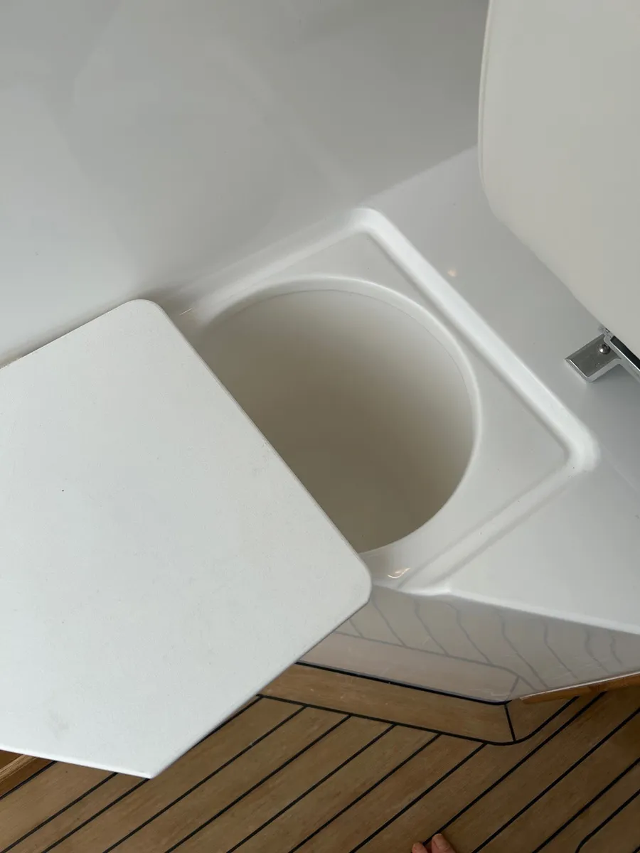 - Holding tank 7 gal with gravity drain overboard via valve or deck pump-out