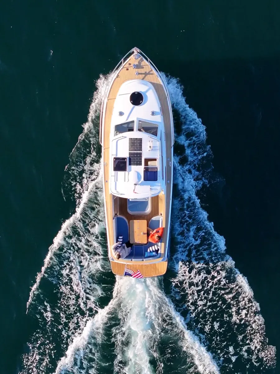 The standard synthetic teak side decking, cockpit sole, swim platform, and coaming caps maintain a traditional look in a practical, low-maintenance manner. Features like solid paneled cabinetry, dovetail-jointed drawers, customized storage, neat and clean wiring and plumbing, and the structural hull matrix reflect the high level of craftsmanship.