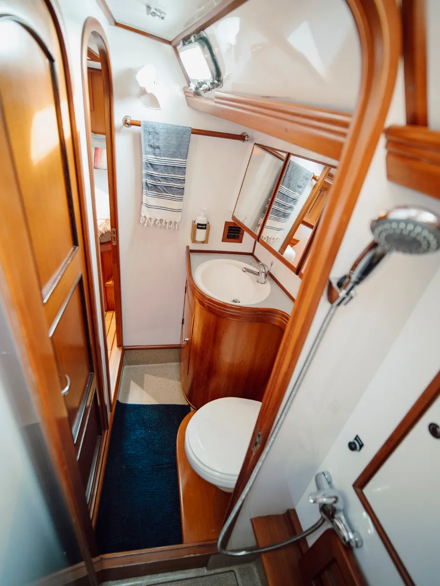As you will find on the equipment list, FREE RANGE offers all of the interior comfort systems you’d expect in a cruising yacht of this caliber. GALLEY EQUIPMENT