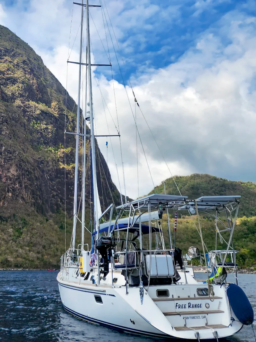 • Custom stainless-steel arch w/ dinghy davits + instruments