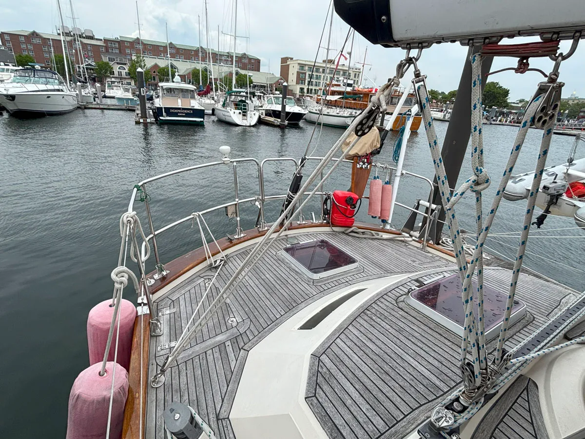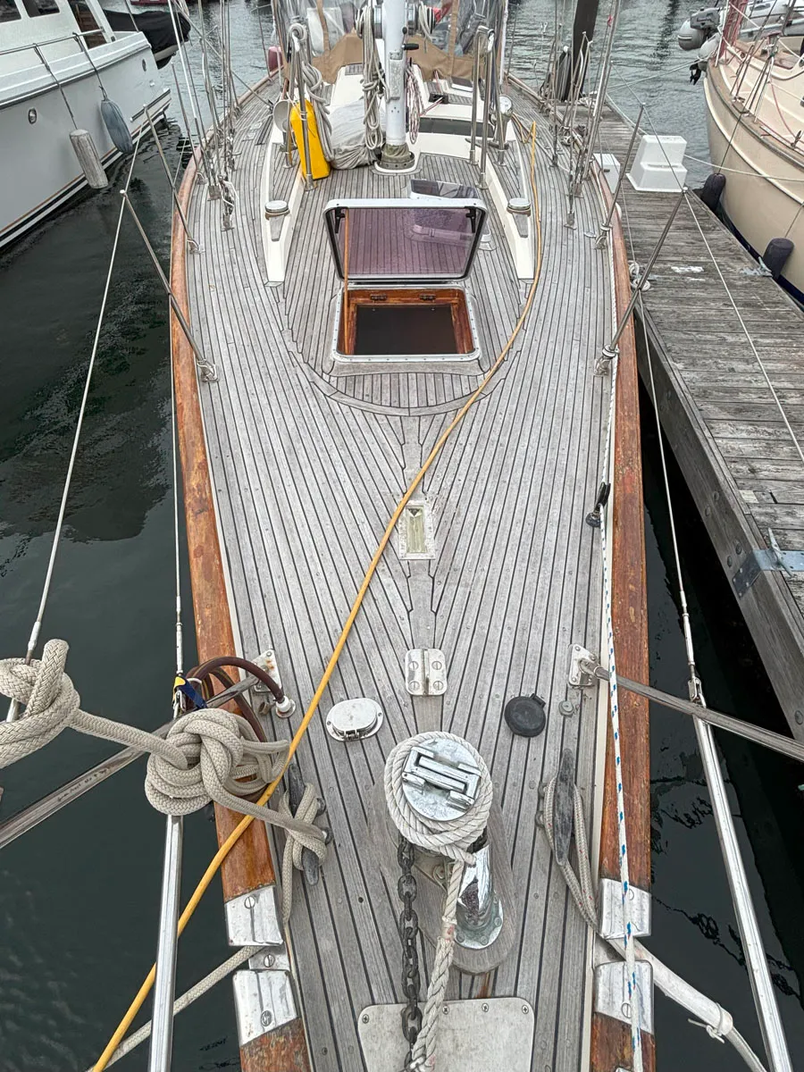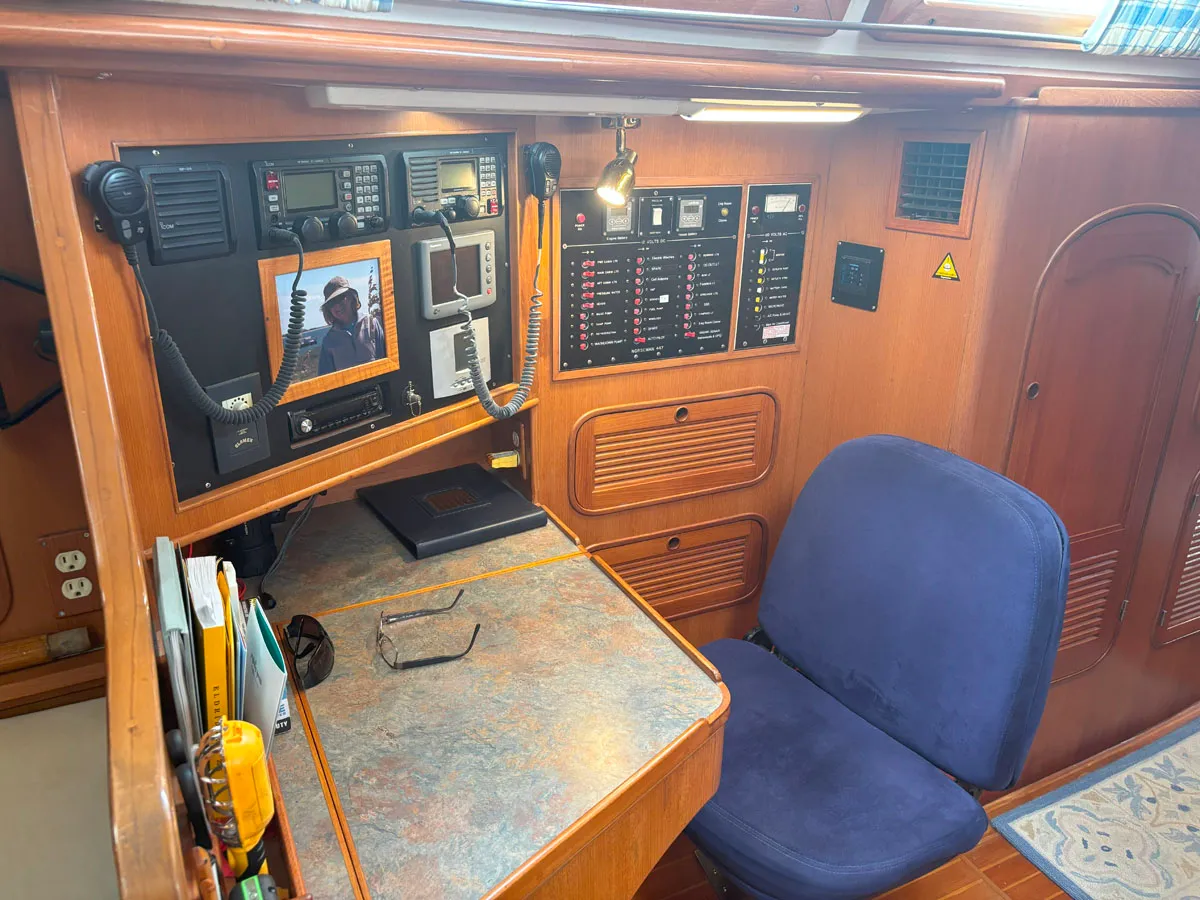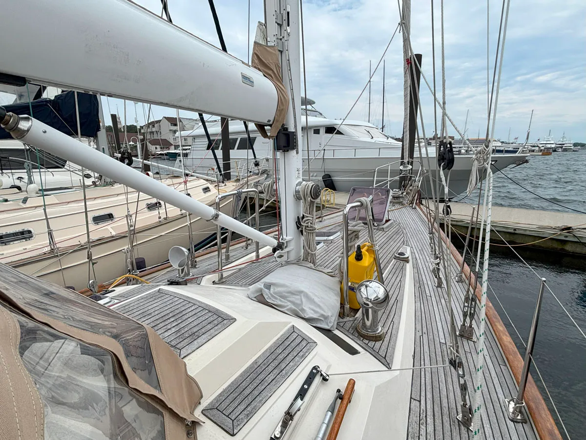 DESCRIPTION The Norseman 447 is solid and reliable bluewater cruiser that has provided its current owners years of safe passagemaking and comfortable evenings of relaxation at anchor. The center cockpit offers great visibility and ease of handling with its furling mainsail and genoa along with its control lines leading to the cockpit. The bimini and dodger offer great protection from the elements. A large-screen chart plotter and sailing instruments allow for convenient navigation. Down below is a cozy main salon with a dining table and seating area, along with a spacious galley to cook meals. The nav station provides ample space for chart work and communications with the breaker panel within easy reach. The aft cabin comfortably sleeps two in a double bed; deck hatches and transom windows give great natural lighting. Connected to this cabin is an ensuite head and shower. A second cabin forward gives a guest or two adequate sleeping quarters and plenty of storage space. This Norseman 447 is ready for your adventures to begin. DESIGN & CONSTRUCTION SEA EAGLE is a Robert Perry designed Norseman 447. The hull is a monolithic construction made of fiberglass with an Airex foam core. The deck also monolithic fiberglass laid up with a balsa core. The deck is bonded and fastened to the hull and includes a through bolted toe rail. The teak decks are glued and fastened to the outer layer of fiberglass. The interior bulkheads are constructed out of marine plywood laminated into place for structural integrity. ACCOMMODATIONS Main Salon