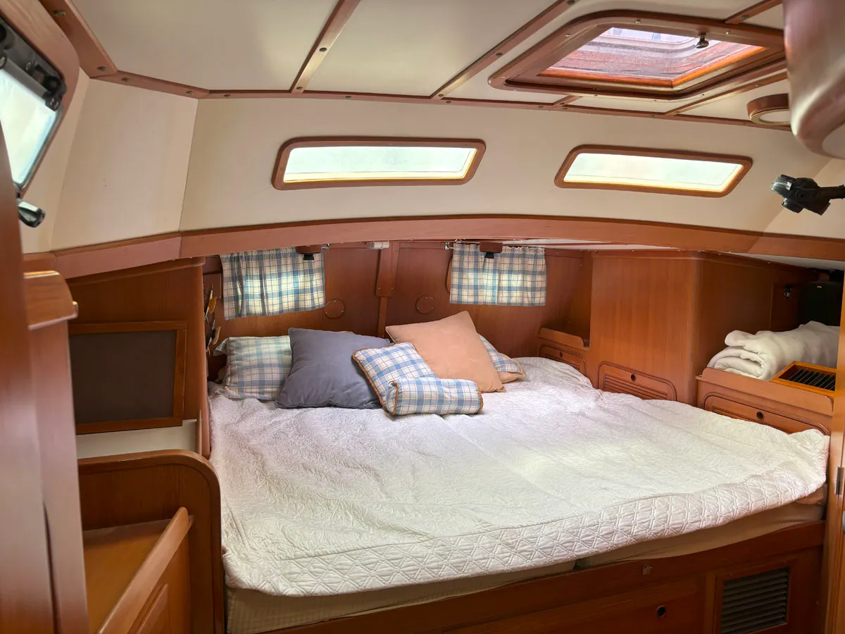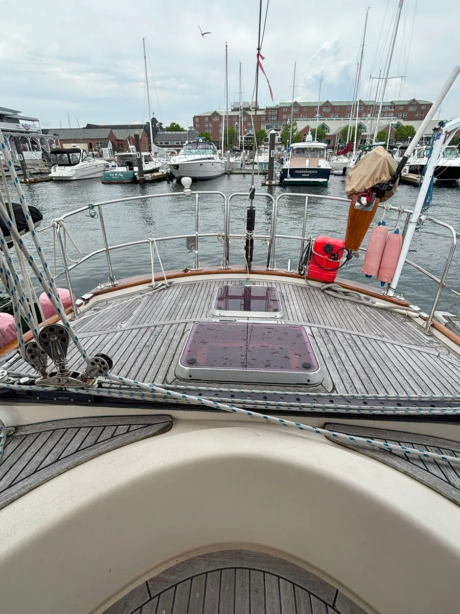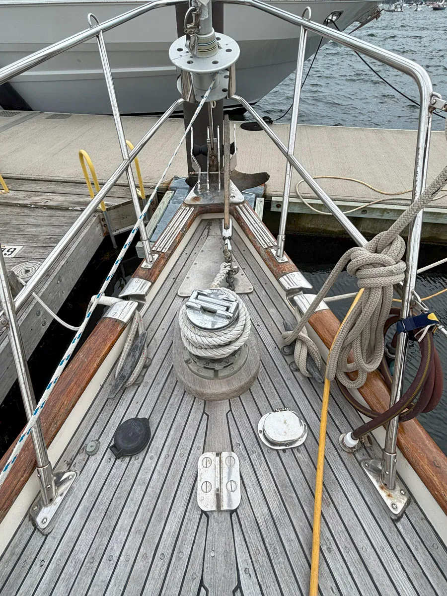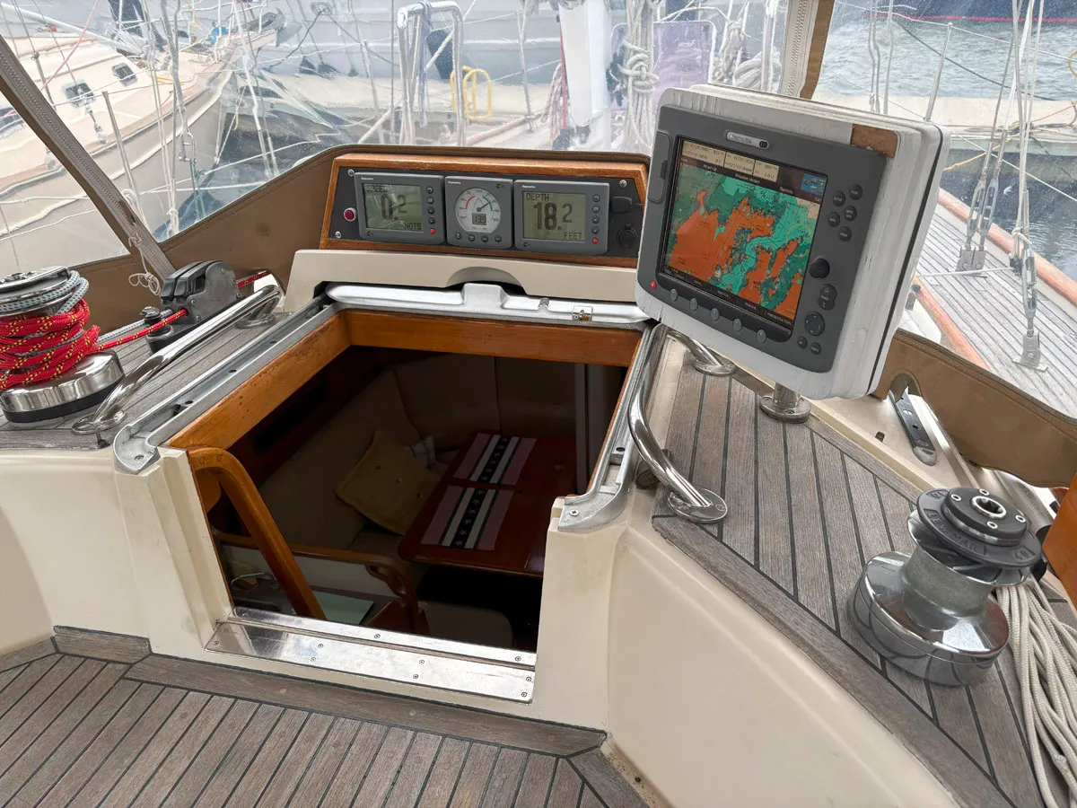 DESCRIPTION The Norseman 447 is solid and reliable bluewater cruiser that has provided its current owners years of safe passagemaking and comfortable evenings of relaxation at anchor. The center cockpit offers great visibility and ease of handling with its furling mainsail and genoa along with its control lines leading to the cockpit. The bimini and dodger offer great protection from the elements. A large-screen chart plotter and sailing instruments allow for convenient navigation. Down below is a cozy main salon with a dining table and seating area, along with a spacious galley to cook meals. The nav station provides ample space for chart work and communications with the breaker panel within easy reach. The aft cabin comfortably sleeps two in a double bed; deck hatches and transom windows give great natural lighting. Connected to this cabin is an ensuite head and shower. A second cabin forward gives a guest or two adequate sleeping quarters and plenty of storage space. This Norseman 447 is ready for your adventures to begin. DESIGN & CONSTRUCTION SEA EAGLE is a Robert Perry designed Norseman 447. The hull is a monolithic construction made of fiberglass with an Airex foam core. The deck also monolithic fiberglass laid up with a balsa core. The deck is bonded and fastened to the hull and includes a through bolted toe rail. The teak decks are glued and fastened to the outer layer of fiberglass. The interior bulkheads are constructed out of marine plywood laminated into place for structural integrity. ACCOMMODATIONS Main Salon