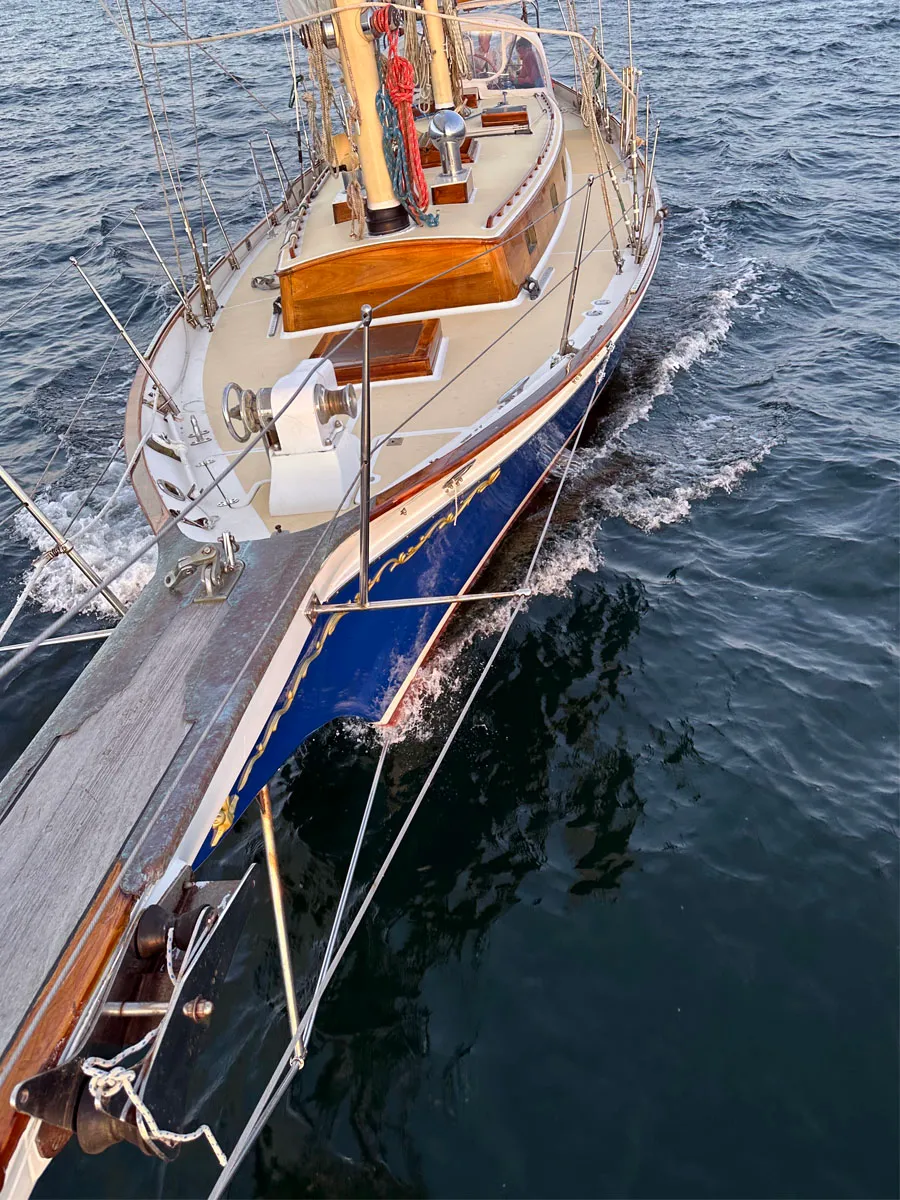 NARWHAL has cruised both the Atlantic and Pacific oceans, but in recent times has been U.S. east coast-based. In the last seven years, she has seen only seasonal use in New England, with indoor heated storage the norm, and professional service by Niemec Marine of New Bedford and The Concordia Company of South Dartmouth, Massachusetts.