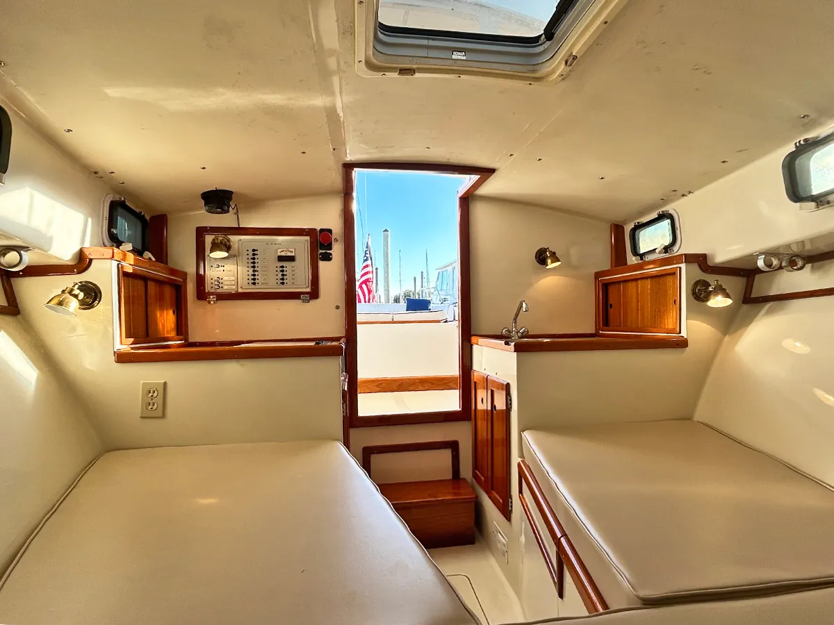 - Access door to forepeak locker over V-berth