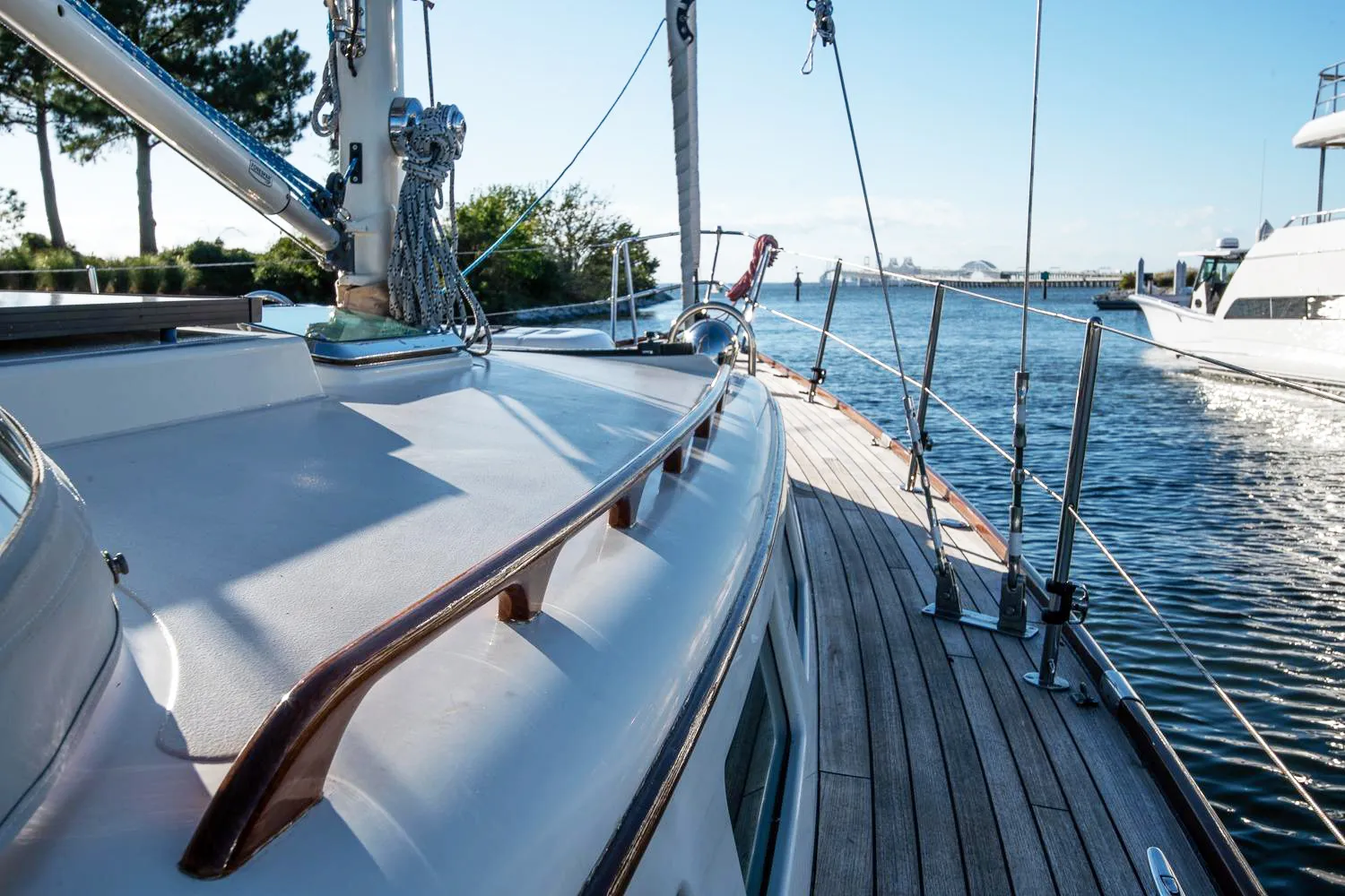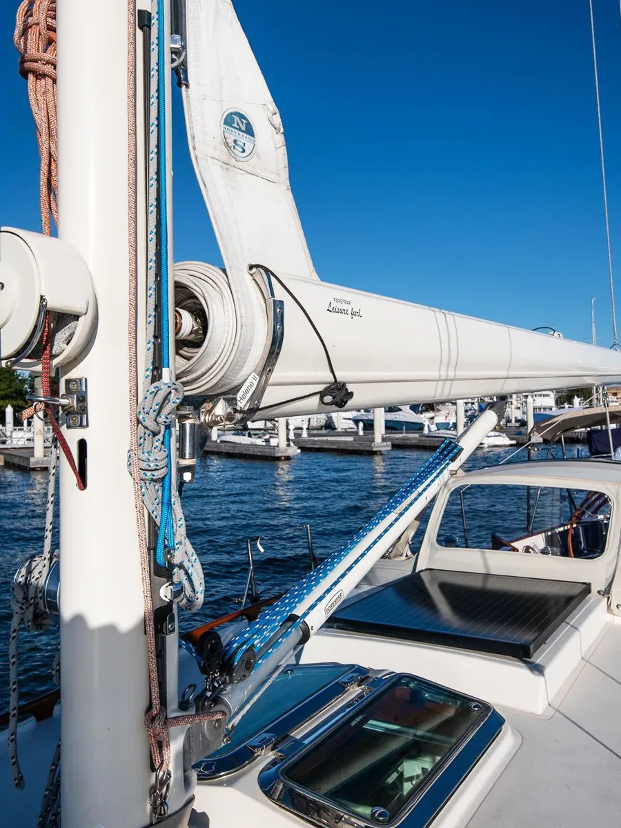 She has gorgeous teak decks, Leisurefurl, and a bow thruster and recent upgrades include hull paint, interior cushions, sails, standing and running rigging, electronics, Saildrive, air conditioning, Starlink and more. Equally suited for simple single handed daysailing or coastal cruising, DREAM GIRL is very nicely equipped and updated.