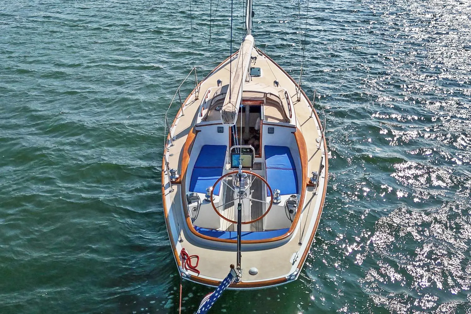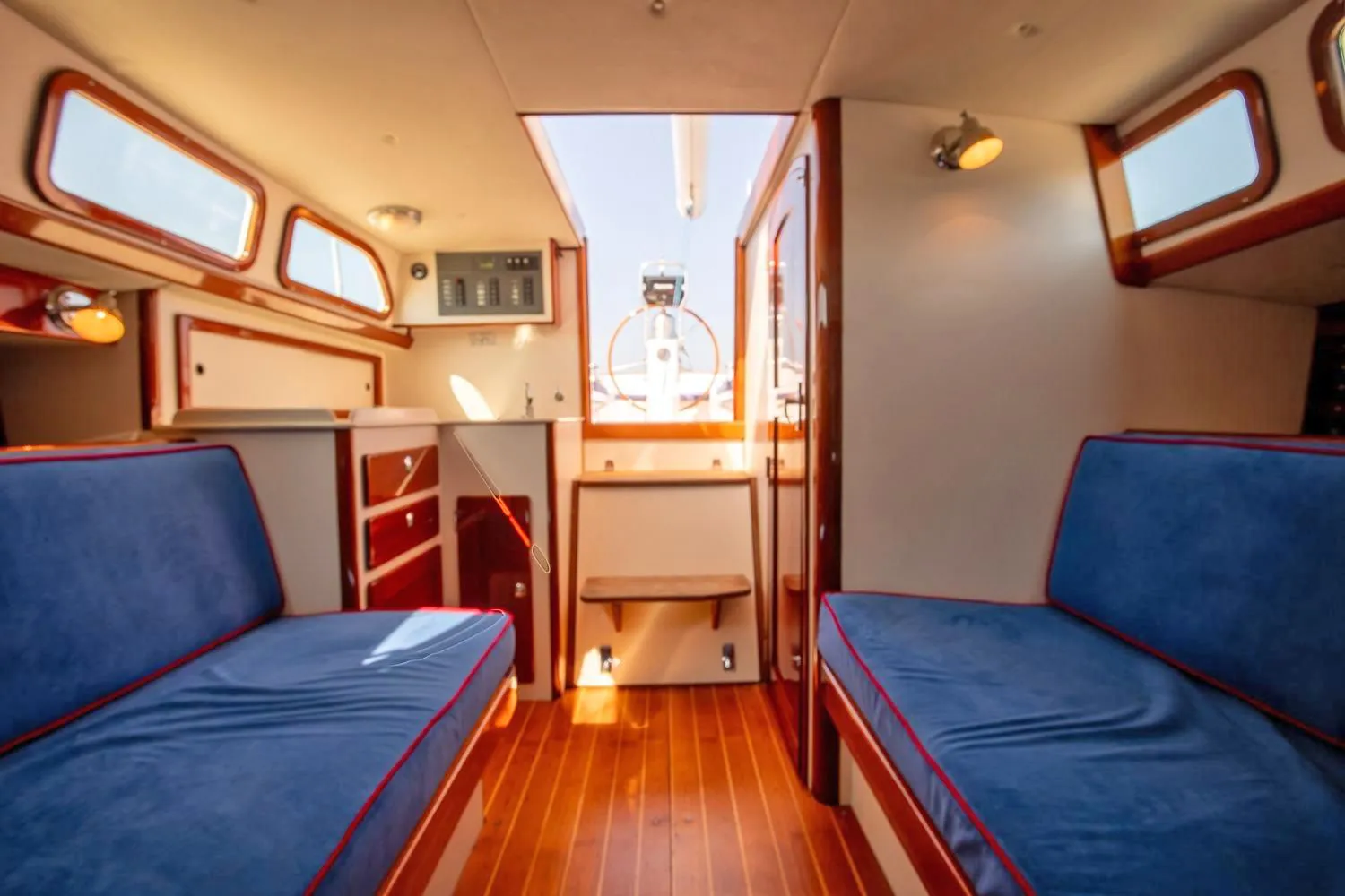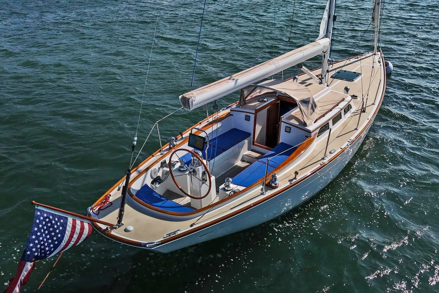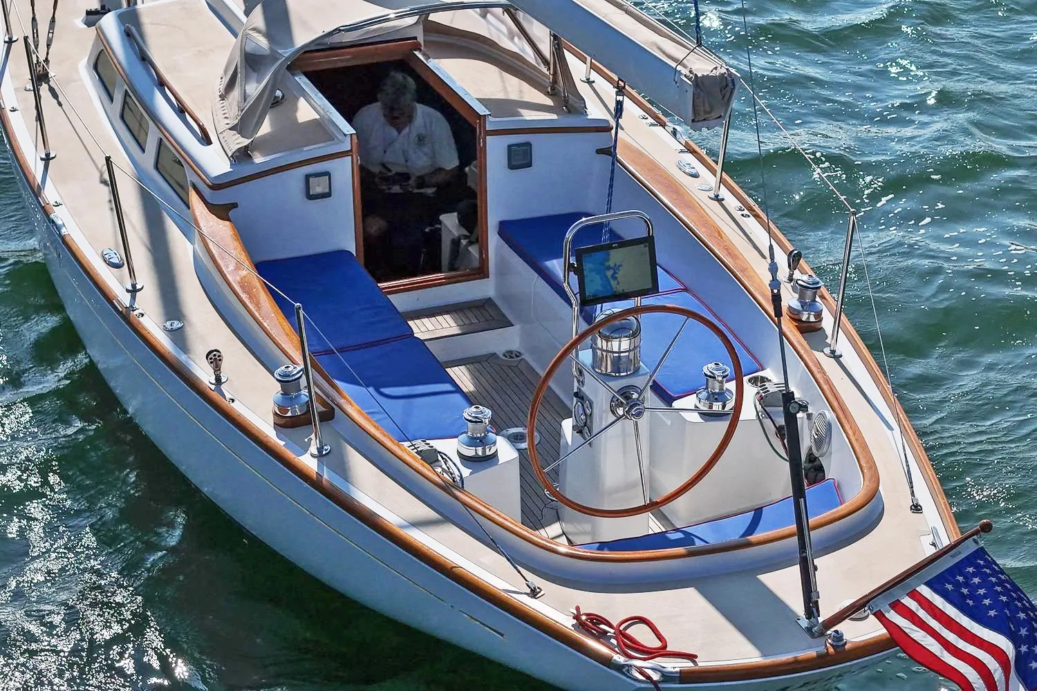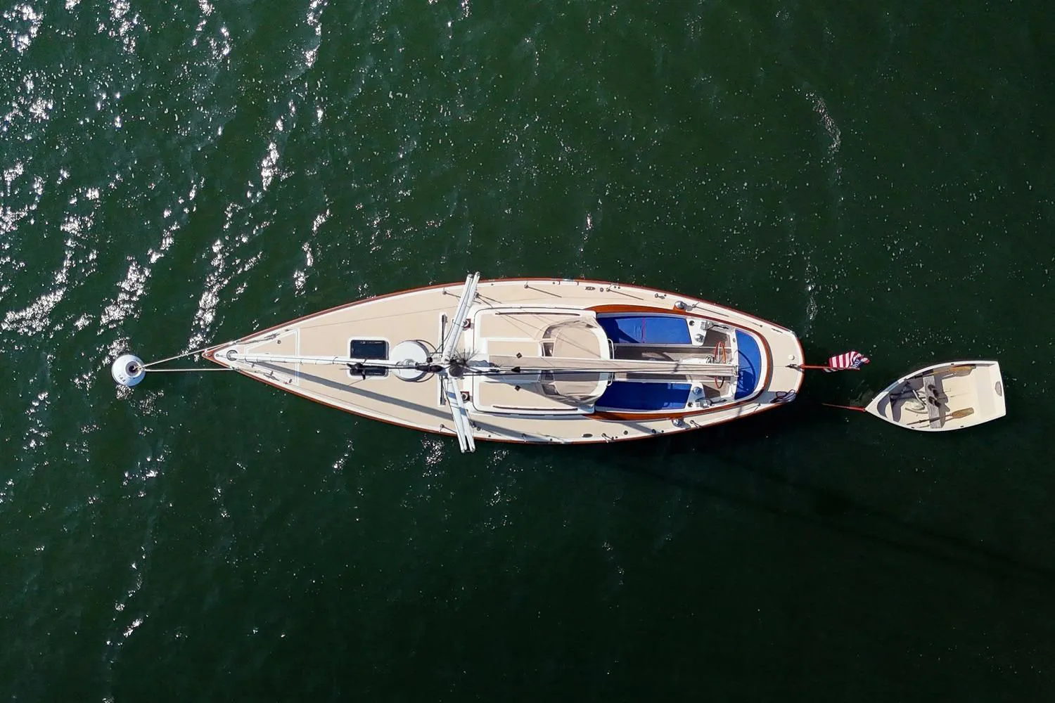 SOMERSET is an excellent example of the elegant simplicity that made has made the M36 the most popular model built by Morris Yachts and perhaps the perfect daysailer. Blending traditional aesthetics with modern materials and naval architecture and heirloom quality craftsmanship, the M36 is designed to be easily handled by one person while providing a large, comfortable cockpit for family and friends. Down below, a simple open interior includes everything needed for an overnight with an enclosed head, basic galley and a large double berth forward and two full length settees.