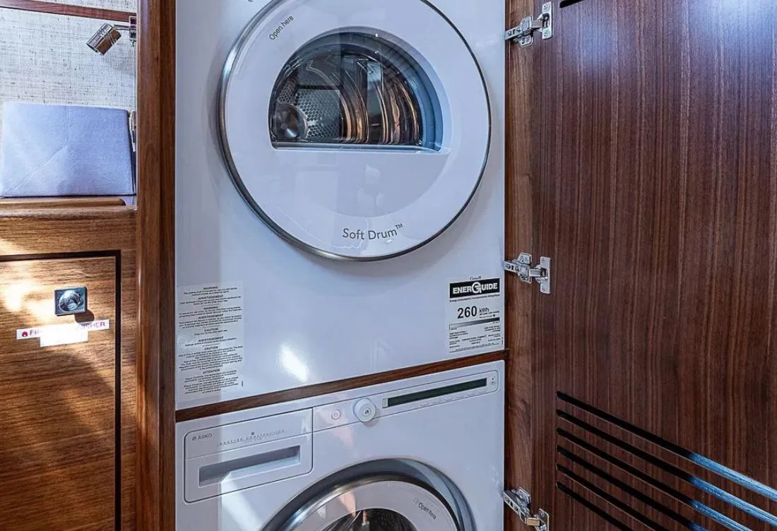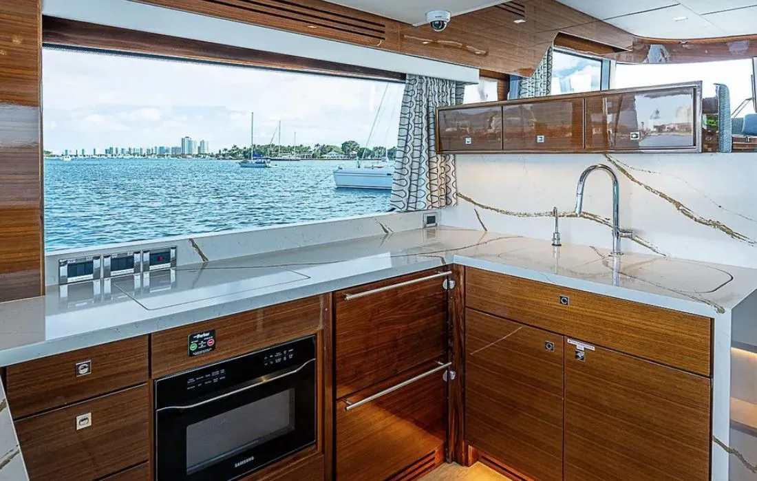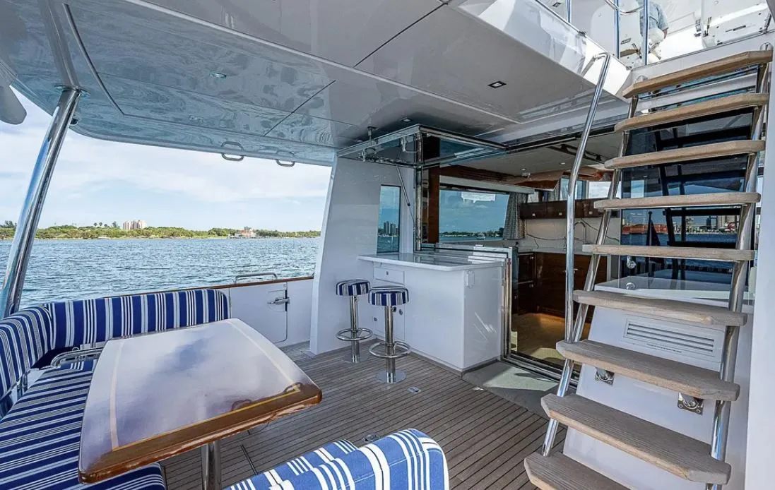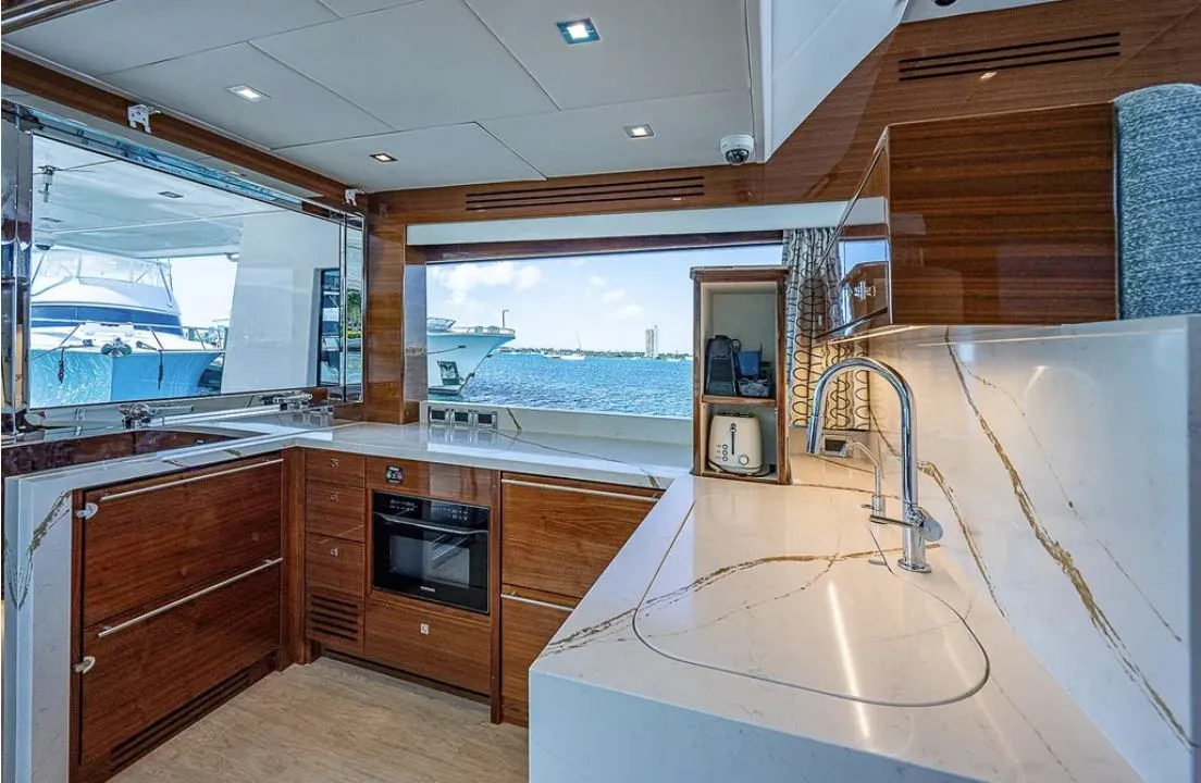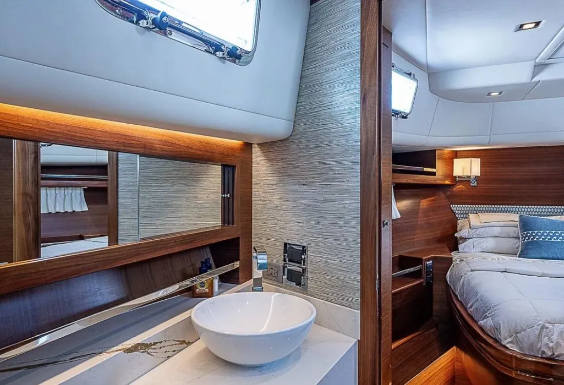 The Summit is also a luxurious vacation home with a full beam master that includes separate WC and shower, his and her lockers, tons of storage and a full-size queen. She has a third stateroom for crew or additional guests, full laundry and a VIP stateroom forward with a luxurious ensuite head and shower.