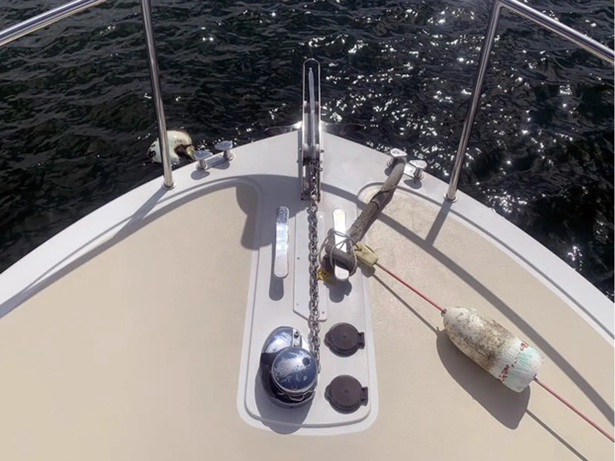 BONNE FETE has benefited from some substantial recent upgrades including a full paint job, new faux teak decks in the cockpit, recent non-skid on all other decks, all new Garmin electronics, and major engine service. Her bow and stern thrusters facilitate easy maneuvering in any situation. She boasts a custom Adirondack bench seat with varnished teak backrests across the stern, along with other less common options including a 12k BTU A/C unit and a custom bimini over the aft cockpit.