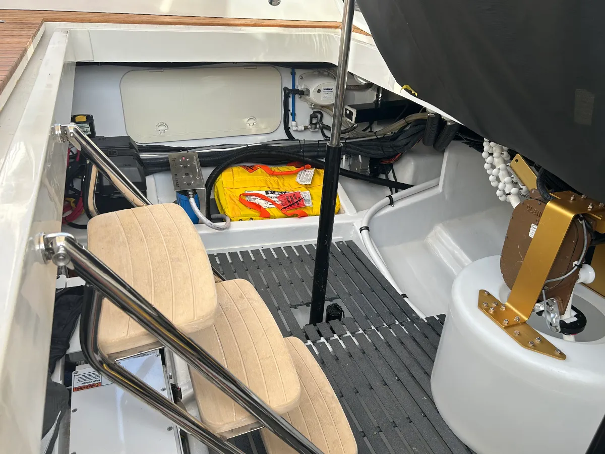 - High-pressure fresh water (washdown in port cockpit locker with 50’ hose and nozzle)