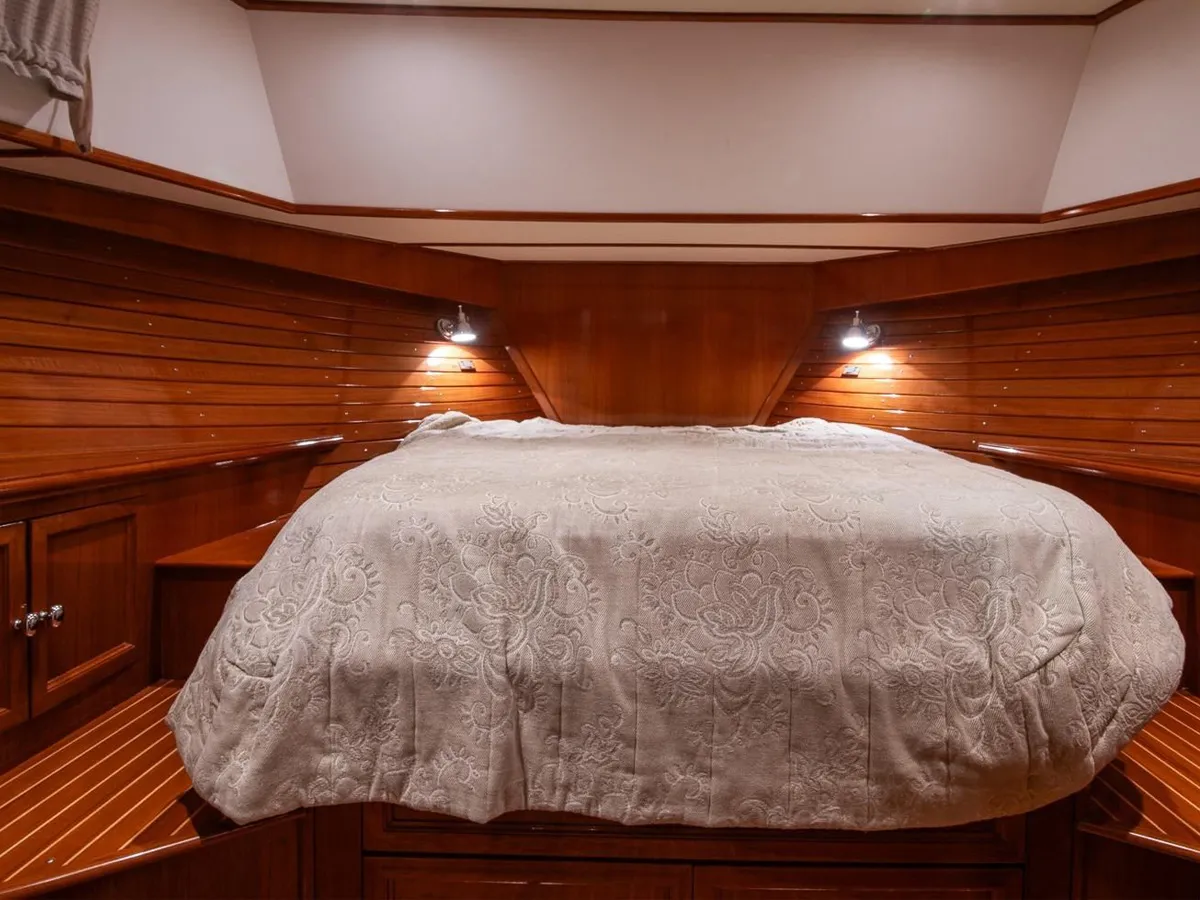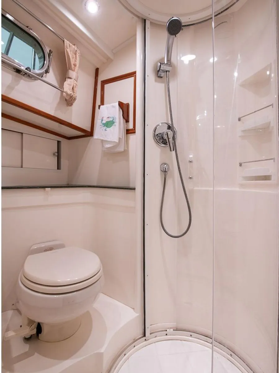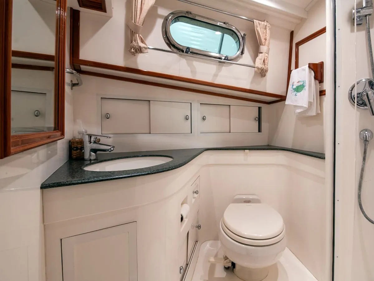 Her simple twin screw with traditional engine controls and a bow thruster provide excellent maneuverability and her C. Raymond Hunt designed deep-V hull delivers an excellent ride underway and her classic Downeast looks will draw admiring looks wherever she goes.