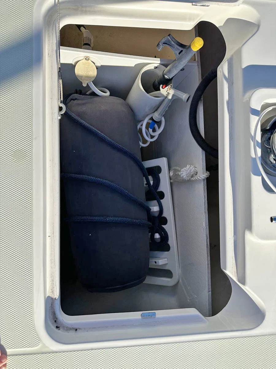 • Washdown; raw water system for cockpit aft & ground tackle forward (note: installed w/ hose in bow anchor well)